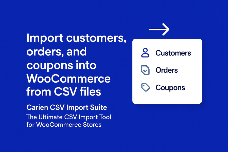 Carien CSV Import Suite for WooCommerce is a powerful and intuitive plugin designed to import Customers, Orders, and Coupons directly into WooCommerce from CSV files — without technical skills and without leaving your WordPress dashboard.