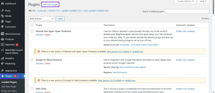 - Install and activate plugins one at a time, starting with the most essential (e.g., payment gateways).