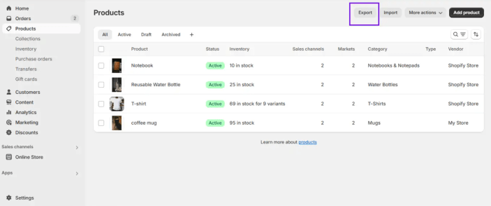 - Export Products: How to export product data as a CSV.